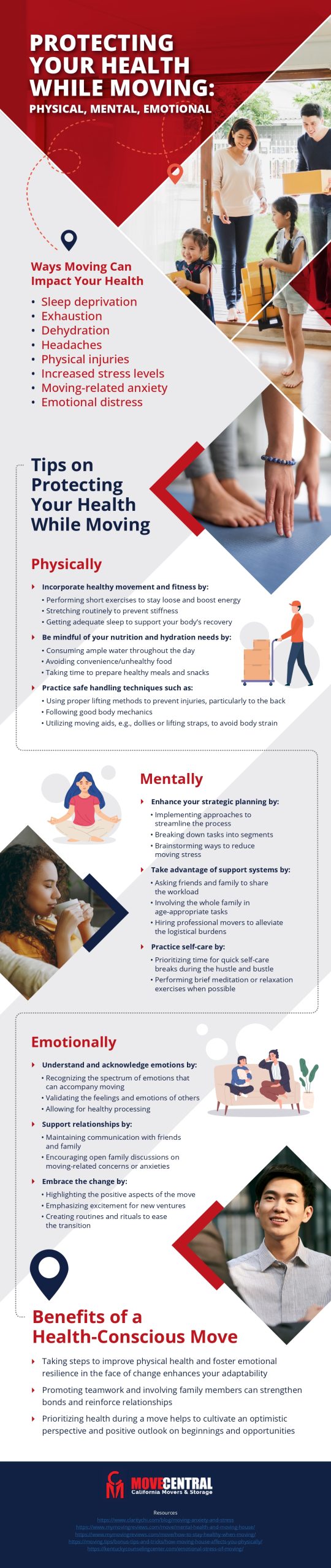 Embarking on a move entails more than just packing boxes; it involves safeguarding your health and well-being amidst the chaos. This graphic presents essential tips to ensure a smoother transition while prioritizing your physical, mental, and emotional health. From managing stress and preventing injuries to nurturing family relationships, these insights offer practical strategies for maintaining your overall well-being throughout the moving process. Whether you’re relocating locally or across the globe, implementing these recommendations can help you navigate the challenges of moving with confidence and resilience. Dive into this graphic for indispensable advice on protecting your health during this transformative journey.